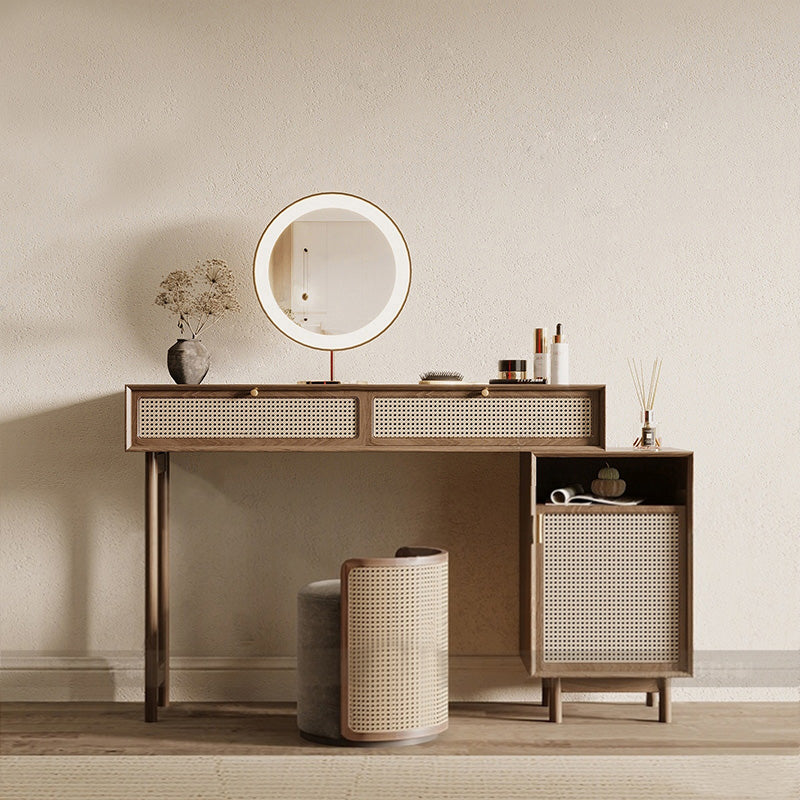 Rattan Makeup Vanity with Light Dressing Table Set