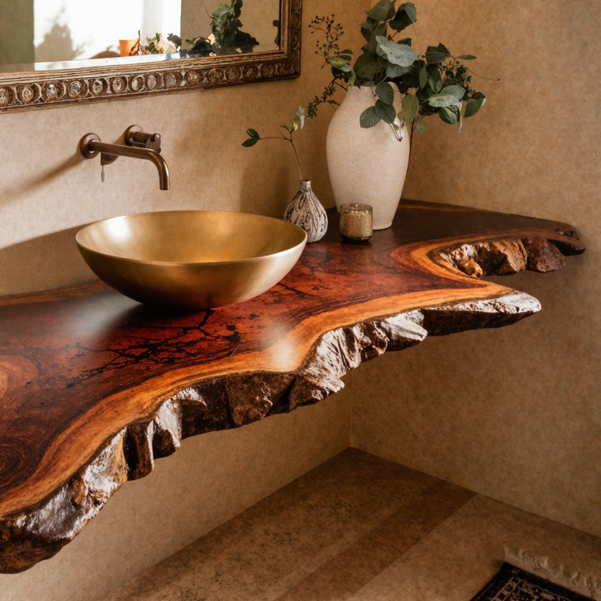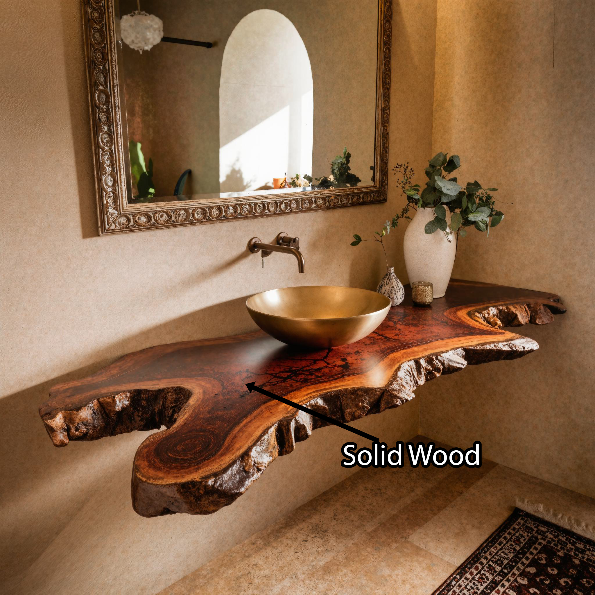 Elevate your bathroom with our Handmade Wooden Vanity, blending rustic charm with modern elegance for style and functionality.