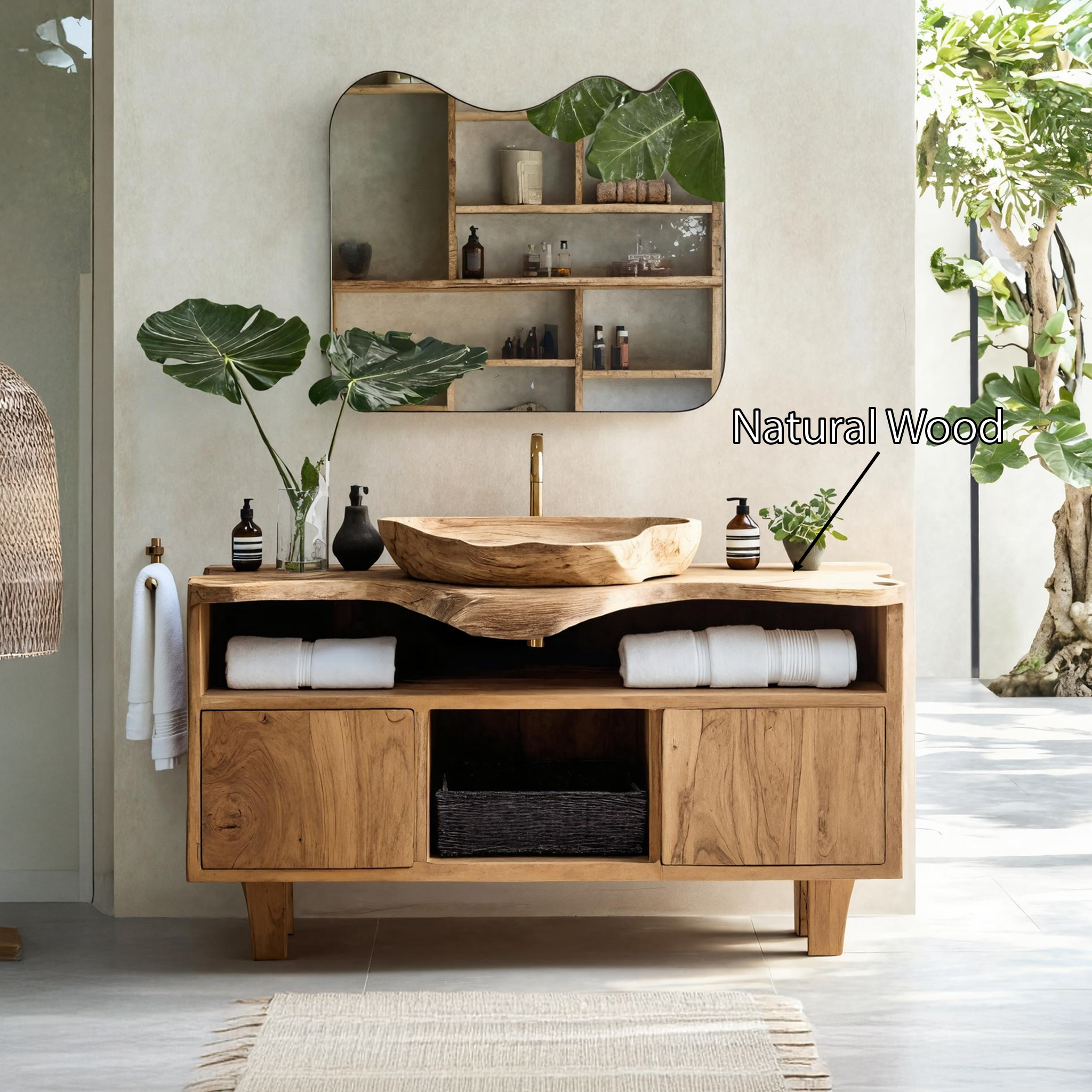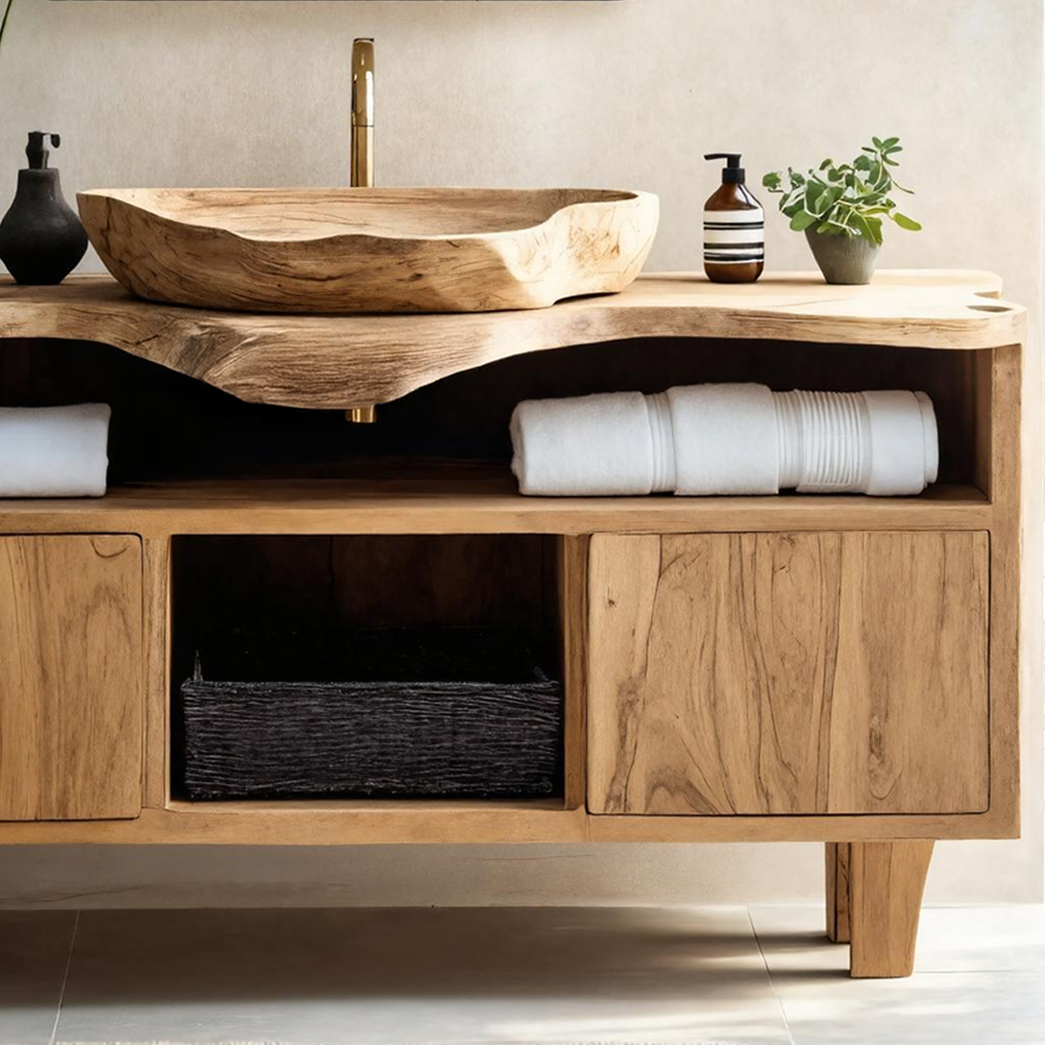 Every vanity features lively, natural wood grain and flowing live edges that highlight the timber’s inherent beauty. No two pieces are alike, giving your bathroom a unique and personal touch. Each surface is carefully finished to ensure durability while preserving its authentic character.