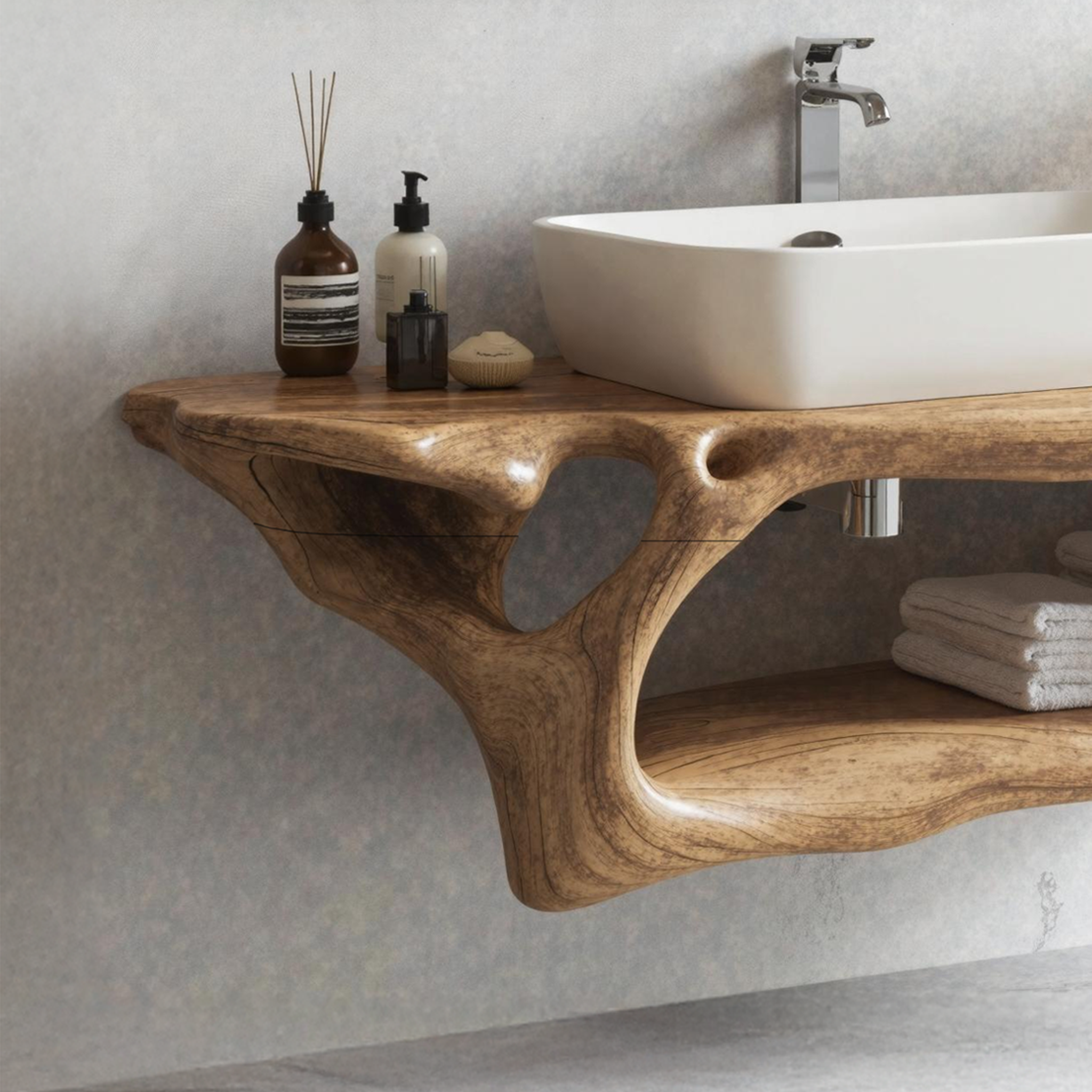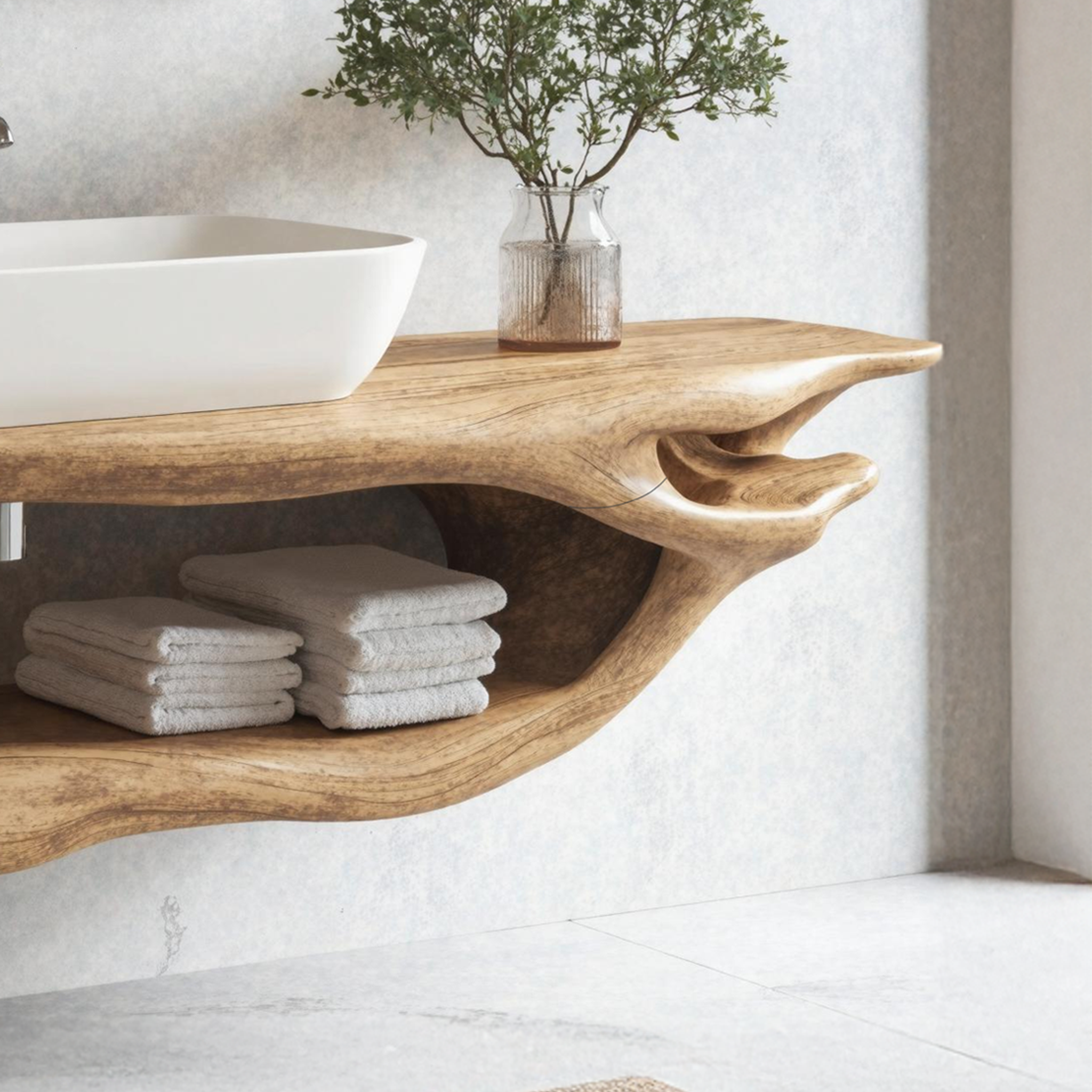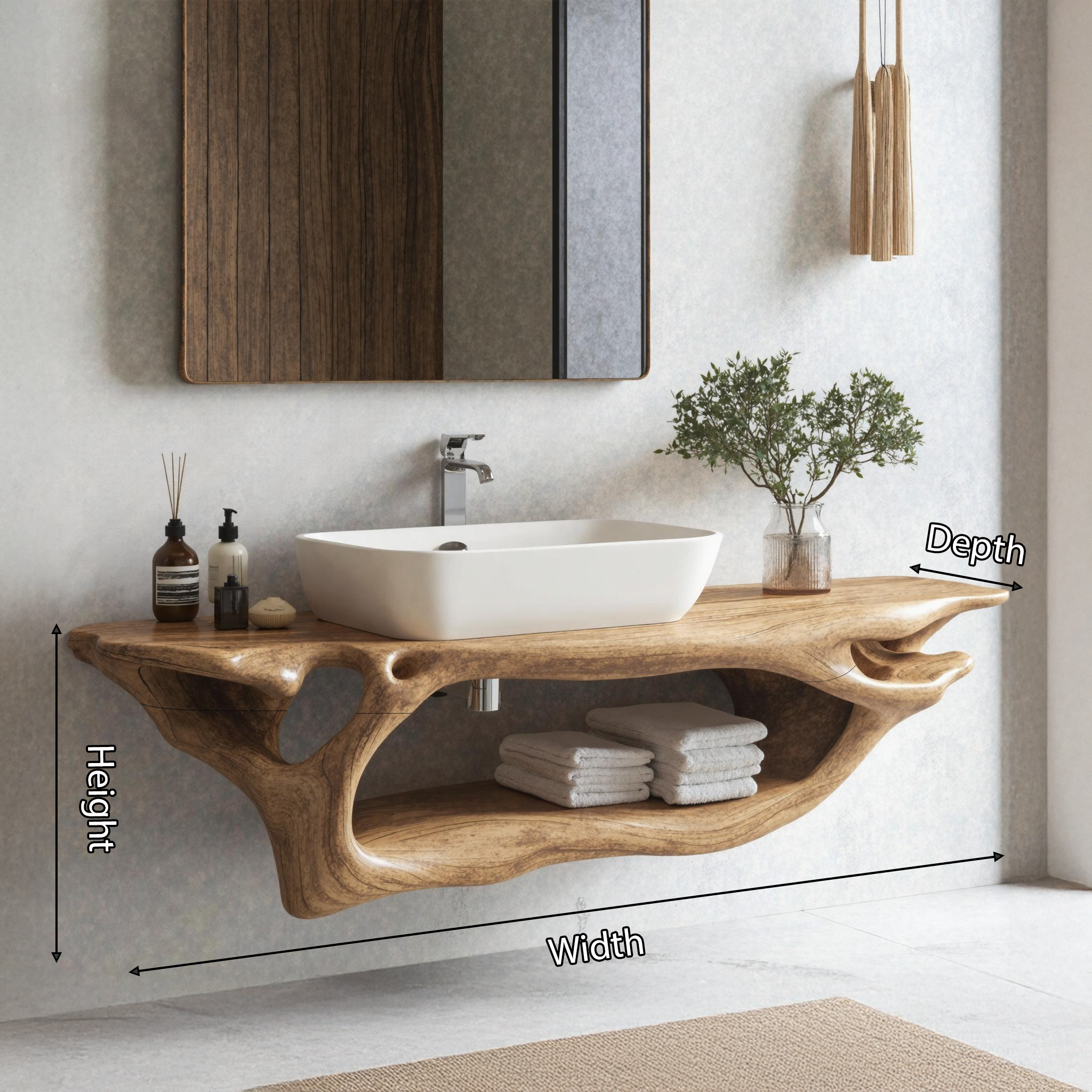 Elevate your bathroom with our Handmade Wooden Vanity, blending rustic charm with modern elegance for style and functionality.