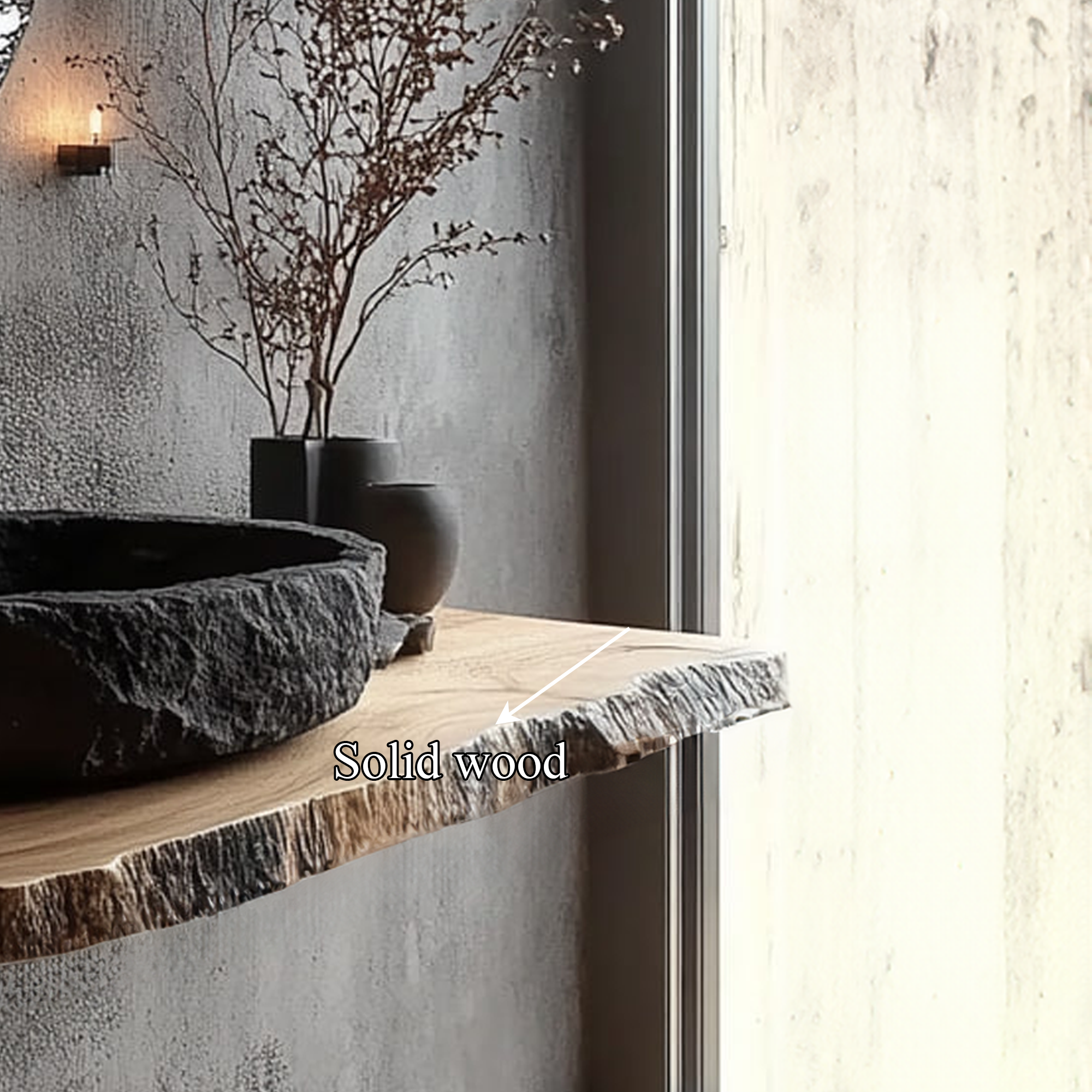 These vanities are perfect for creating an authentic rustic style. Live edges may become slightly raised or flaky during shipping due to the oil softening the wood. This can be easily fixed with a quick sanding. We include sandpaper for this purpose. As the oil fully cures, the live edge will harden.