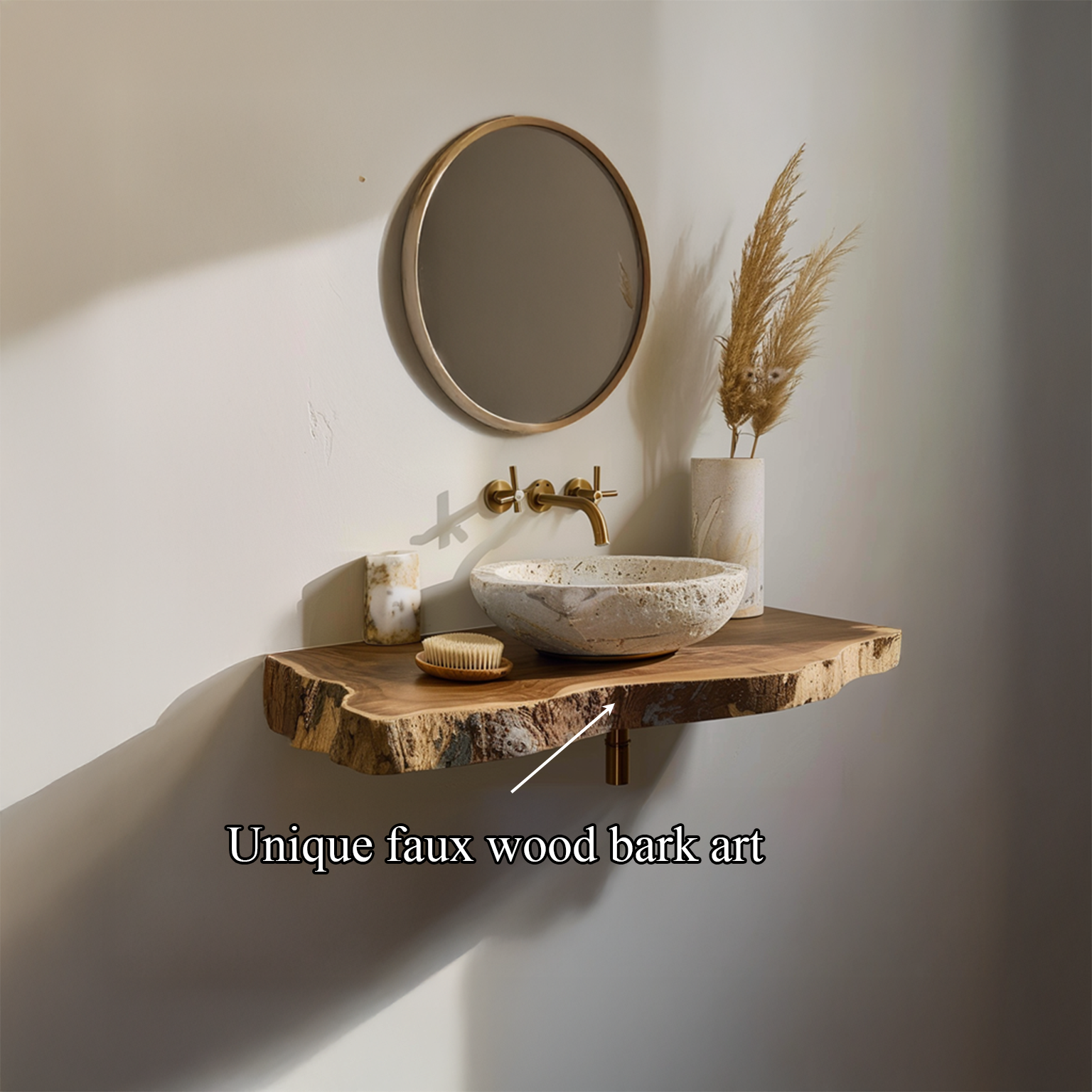 Bring natural elegance into your home with the Rustic Floating Shelf Sink Bathroom, a handcrafted vanity that blends rustic warmth with modern simplicity. Made from reclaimed wood with a natural live edge, each piece is unique, showcasing rich grains and organic textures. Designed with a floating shelf style, it offers both functional sink support and timeless rustic charm for any bathroom.