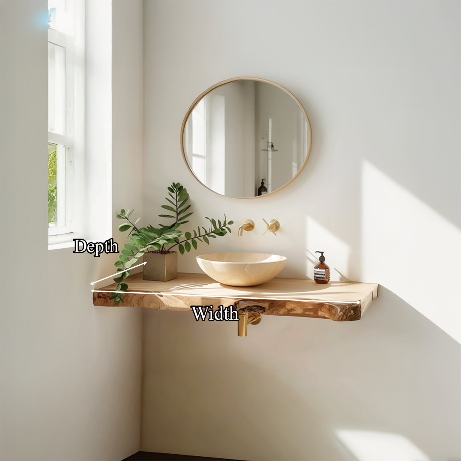 Enhance your bathroom with the Rustic Floating Shelf Washstand Bathroom, a handcrafted piece that combines rustic charm with practical design. Built from reclaimed wood and finished with a natural live edge, each washstand features unique grains, textures, and organic details that make it truly one of a kind. With its floating shelf style, it offers both functionality and timeless warmth, creating a striking centerpiece for any bathroom.