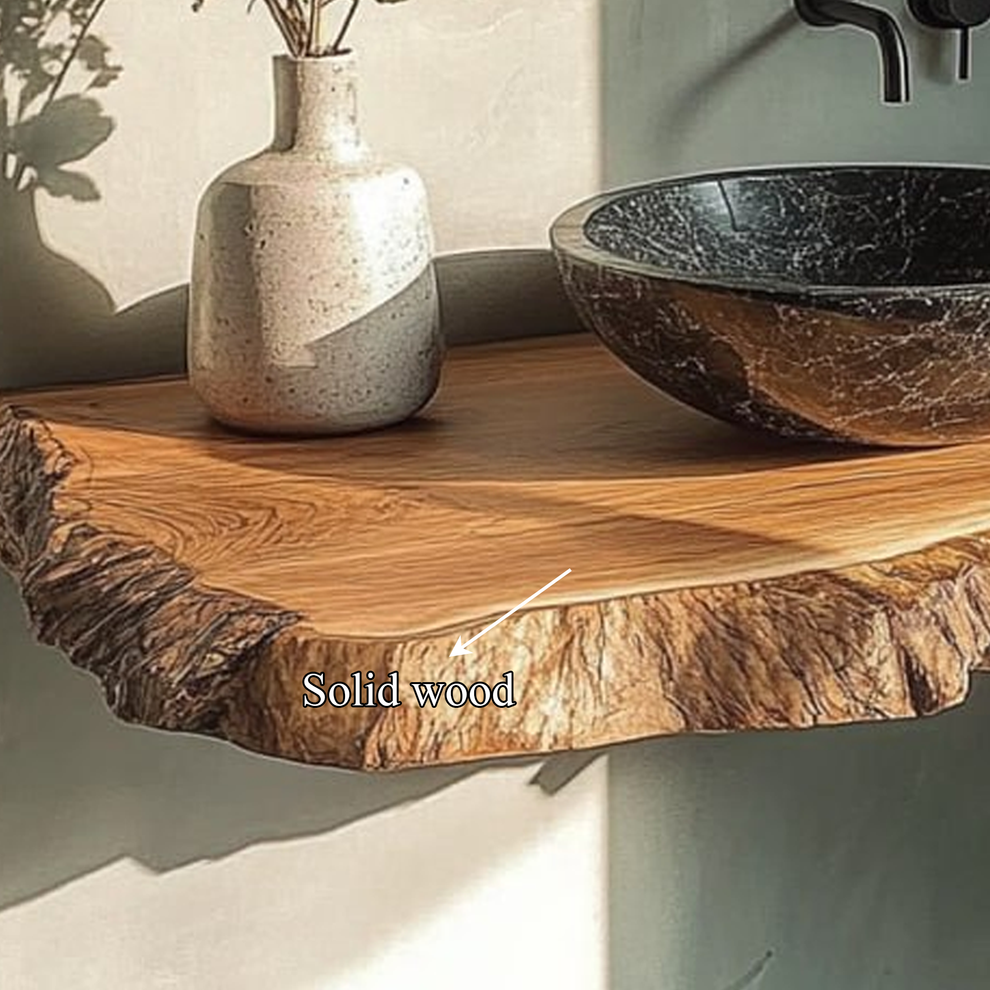 These vanities are perfect for creating an authentic rustic style. Live edges may become slightly raised or flaky during shipping due to the oil softening the wood. This can be easily fixed with a quick sanding. We include sandpaper for this purpose. As the oil fully cures, the live edge will harden.