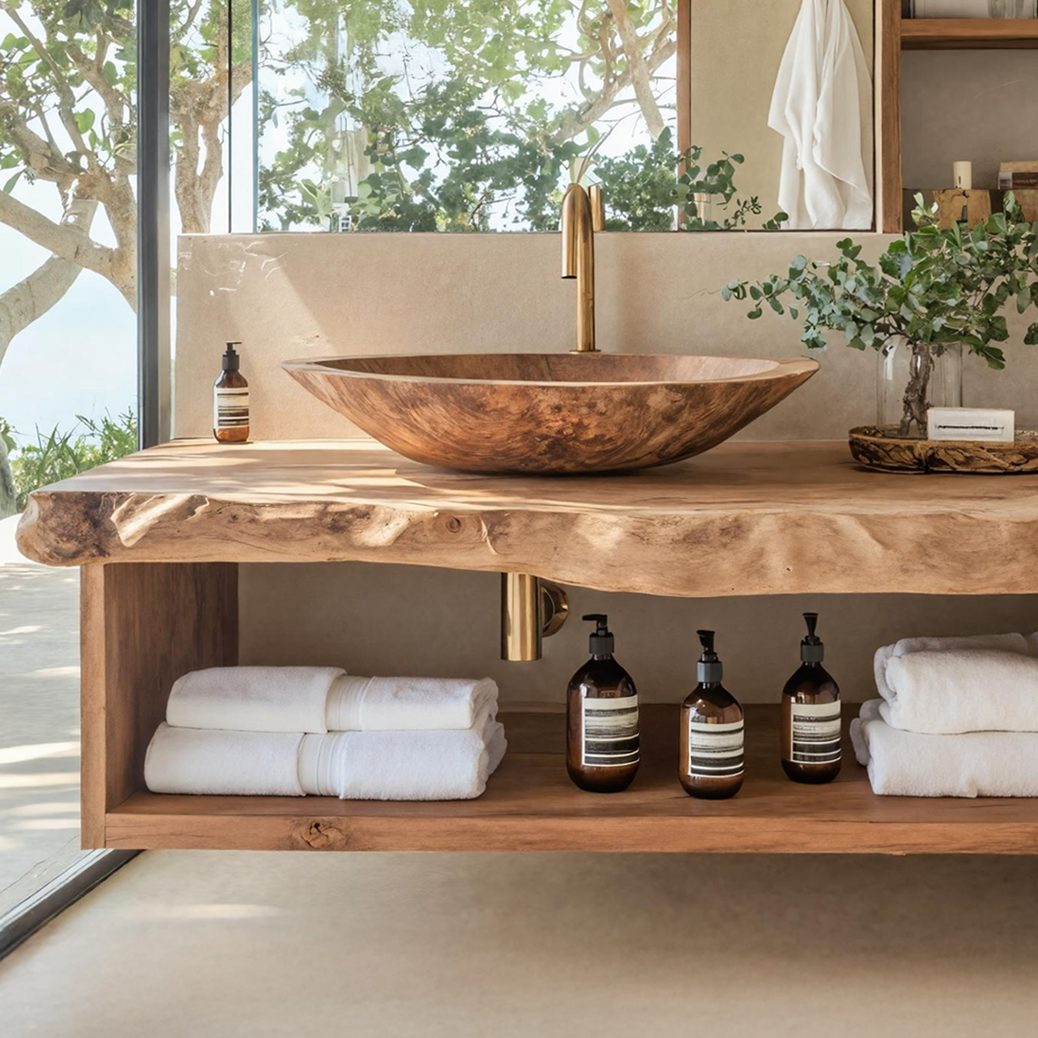 Each vanity showcases the natural beauty of solid wood, with distinctive grain patterns, organic edges, and unique textures that ensure no two pieces are alike. Every curve and contour celebrates the character of the timber, making your vanity truly one of a kind. Finished to highlight the wood’s warmth, it adds depth and elegance to your bathroom.