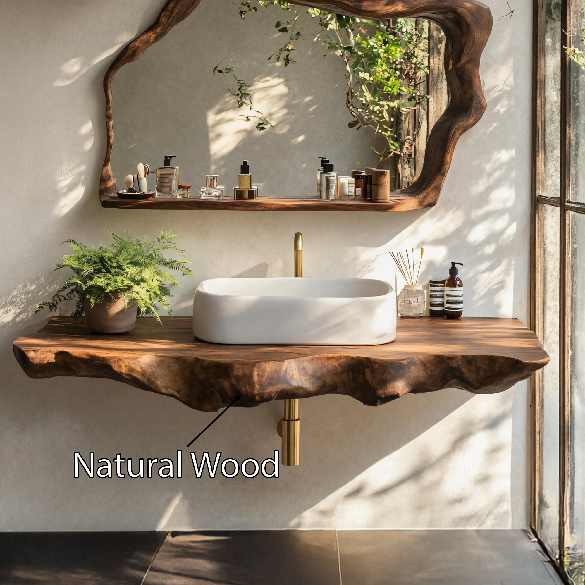 Elevate your bathroom with our Handmade Wooden Vanity, blending rustic charm with modern elegance for style and functionality.