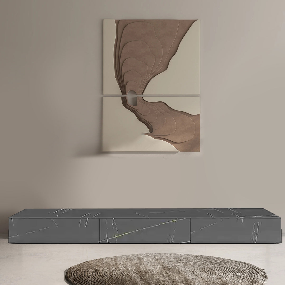 Three Drawers TV Cabinet with Textured Rock Surface