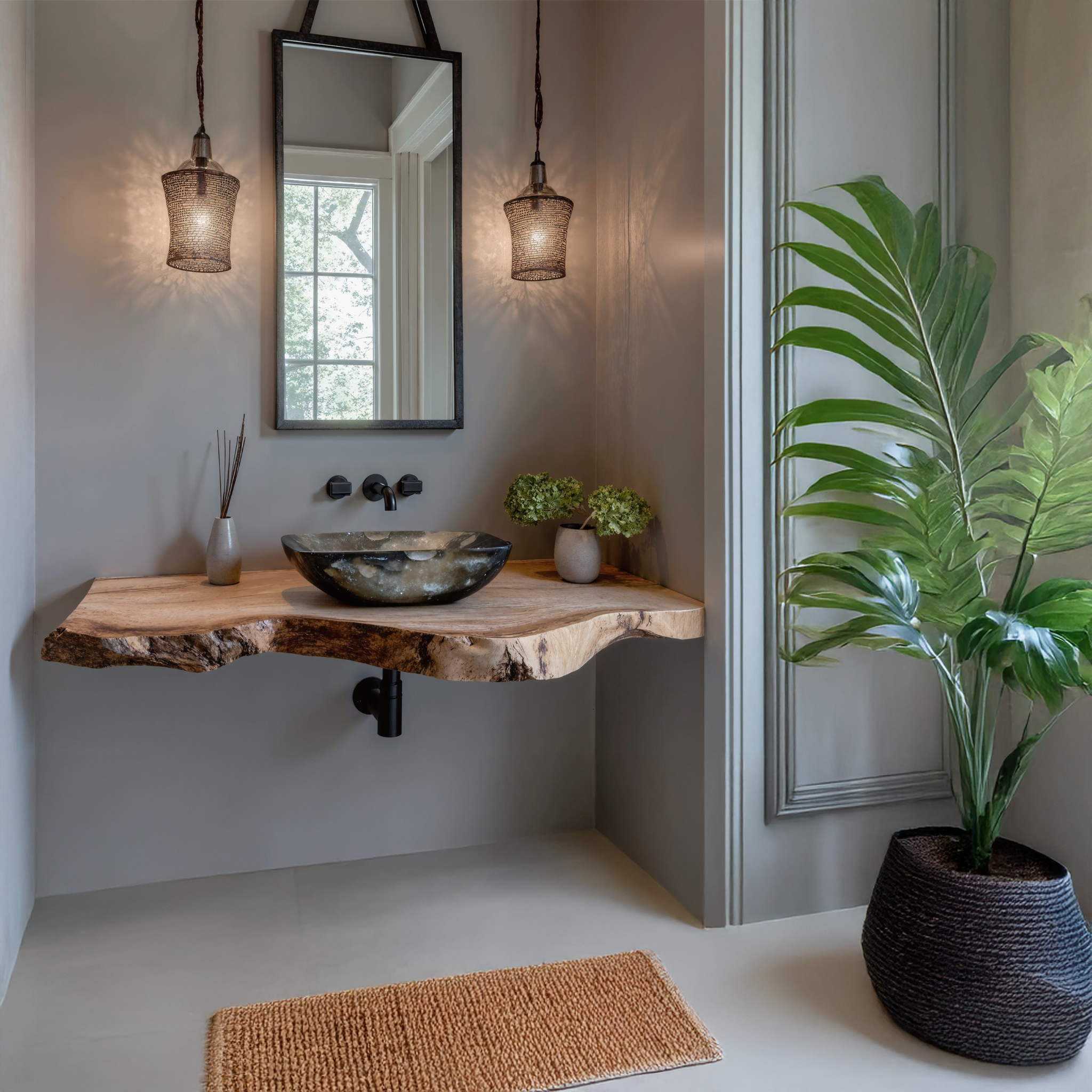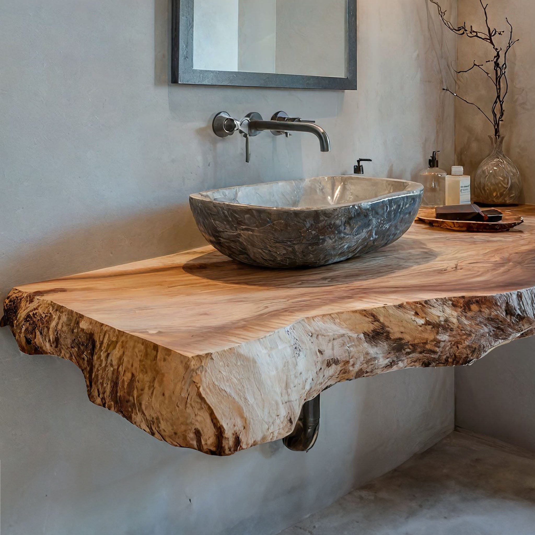 Modern Design: Combines rustic elements with contemporary design, perfect for any bathroom decor.