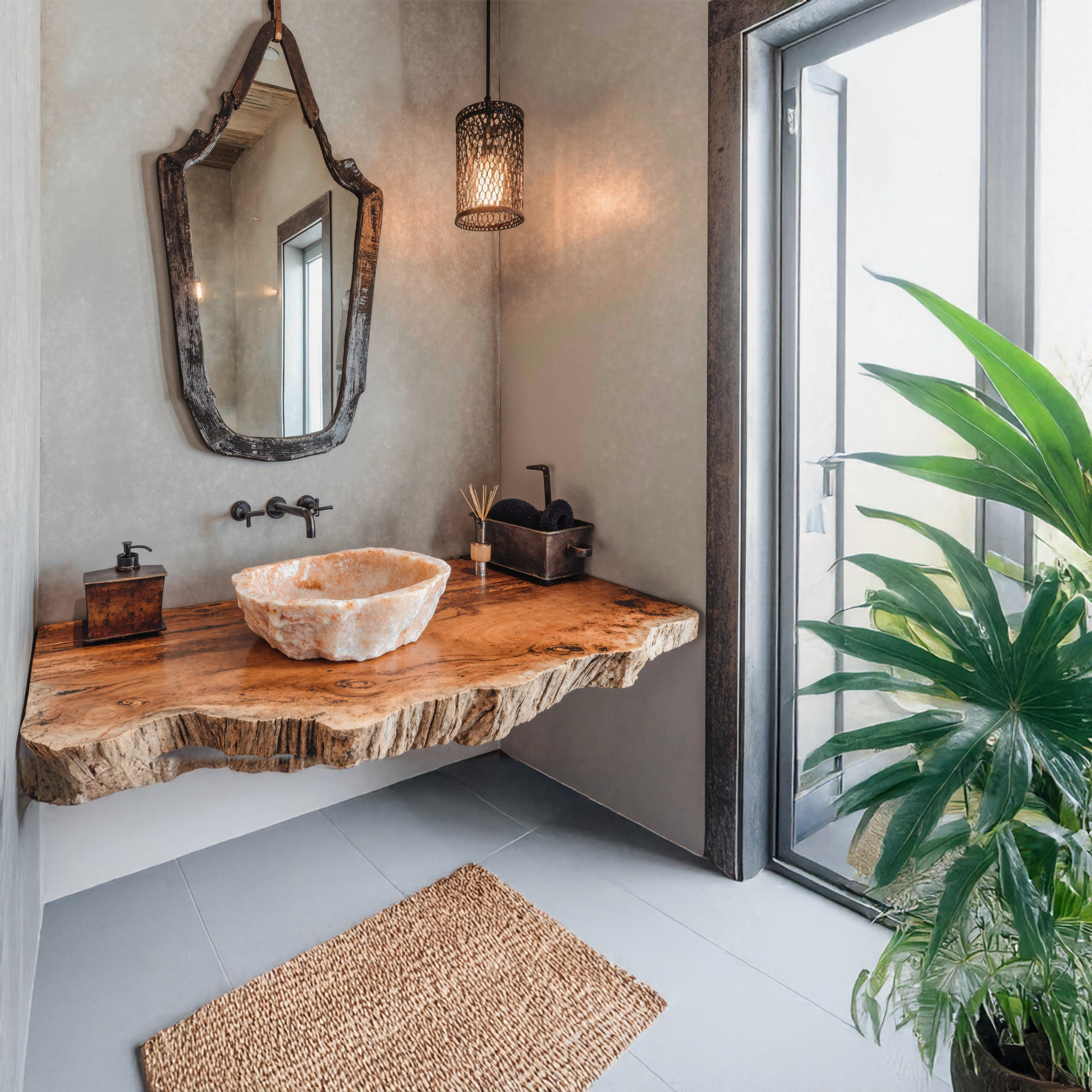 Modern Design: Combines rustic elements with contemporary design, perfect for any bathroom decor.