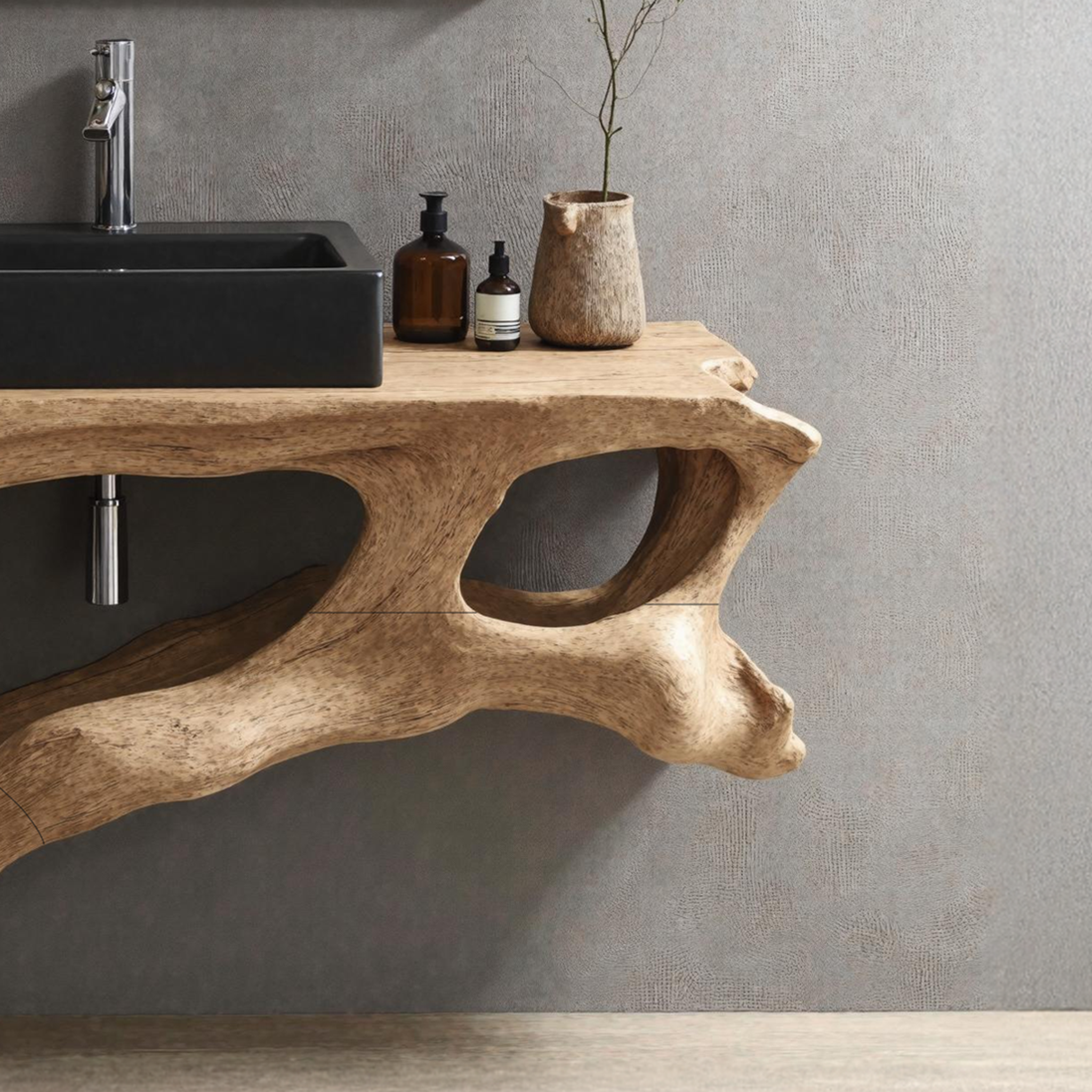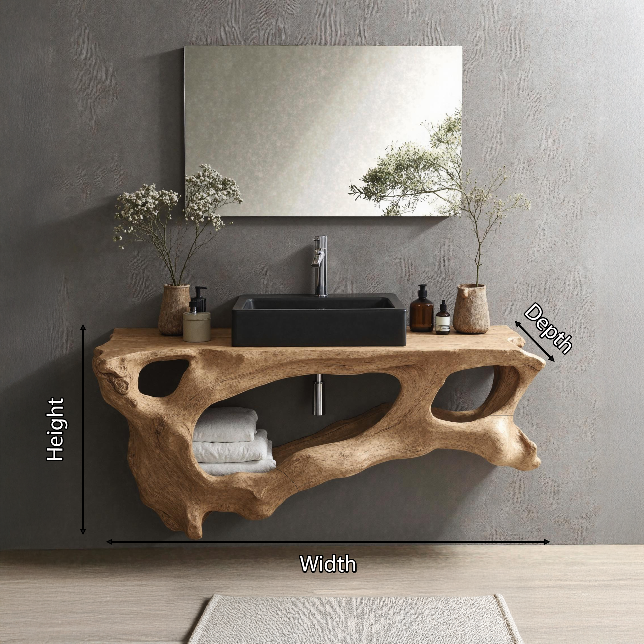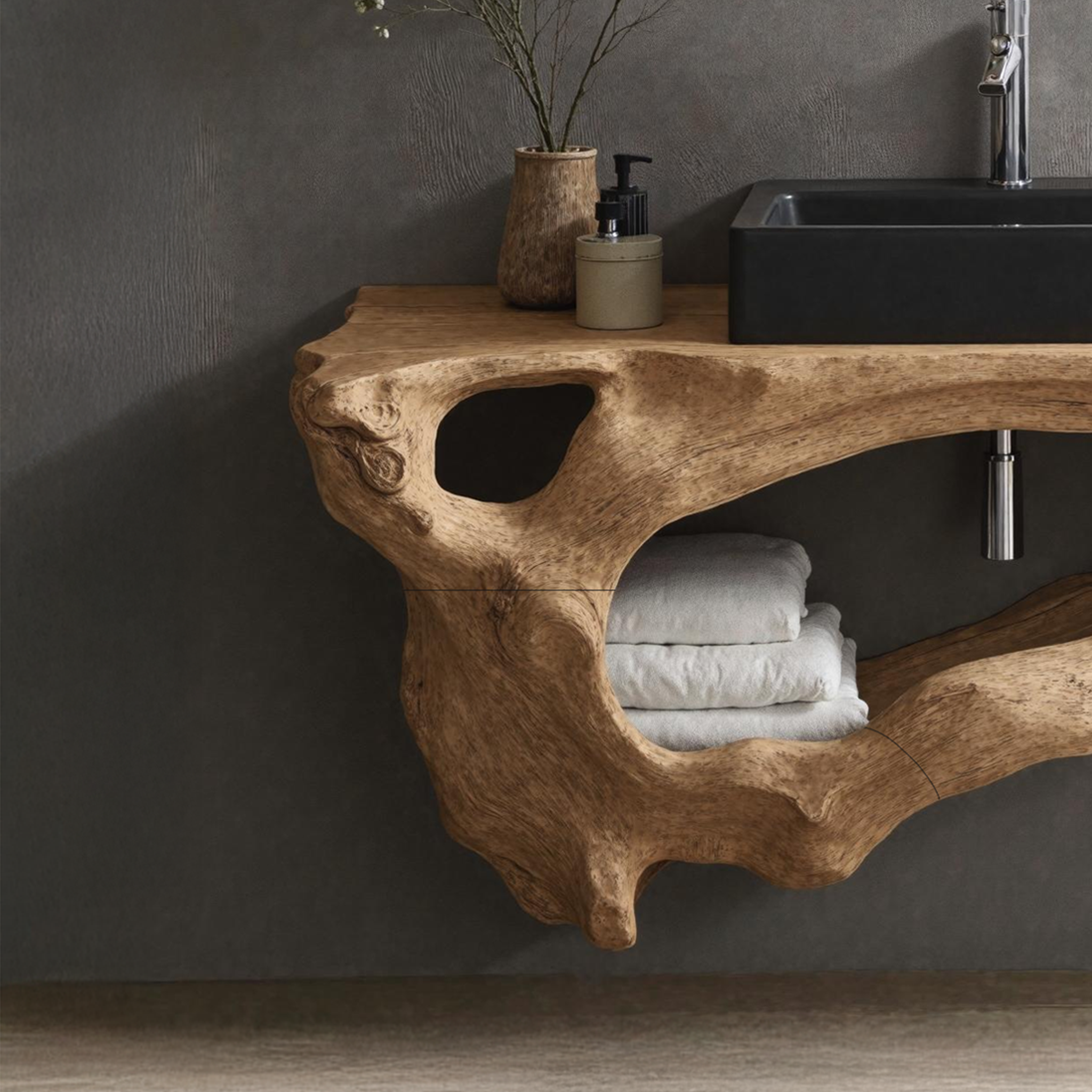 Elevate your bathroom with our Handmade Wooden Vanity, blending rustic charm with modern elegance for style and functionality.
