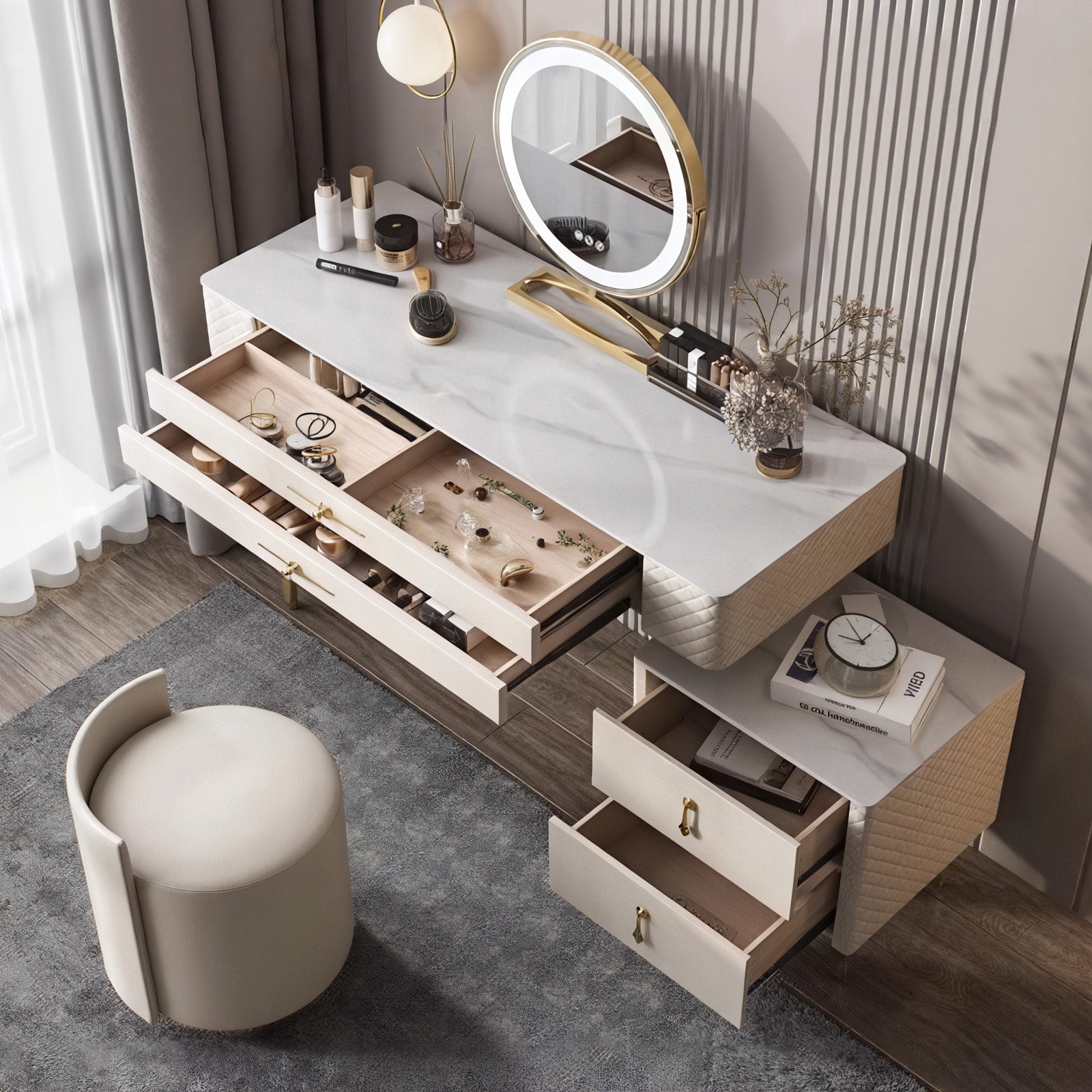 The desktop is spacious, the mirror height is moderate, and with soft lighting, you have a comfortable experience when applying makeup, making it convenient for you to dress up carefully.